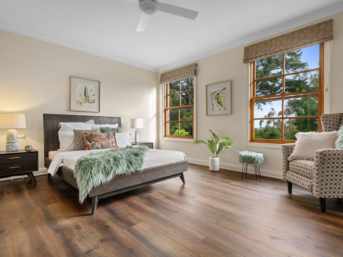 Comfort is French doors opening to garden views, two fireplaces, and split-system heating and cooling.