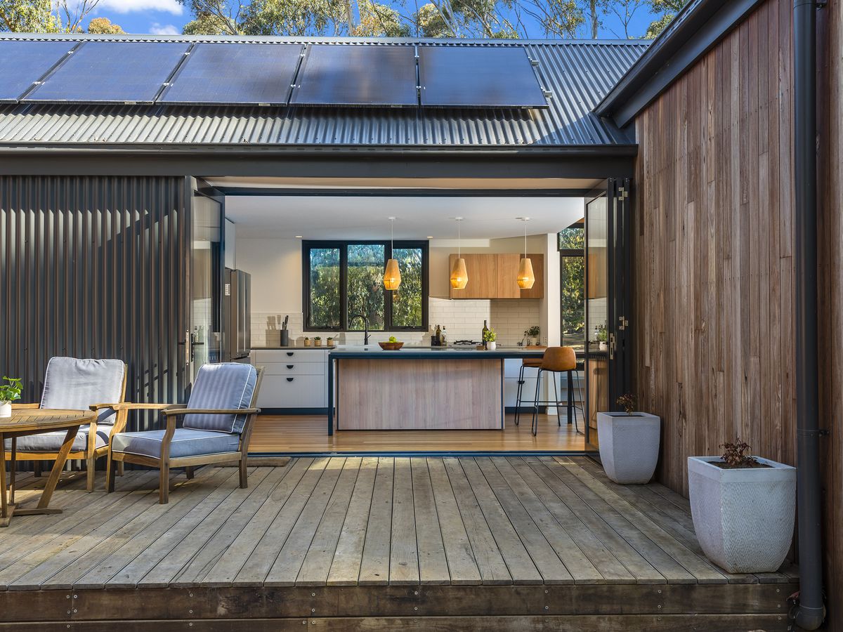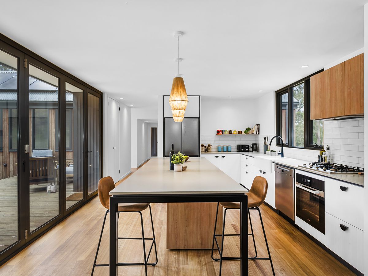 A combination of spotted gum and Colorbond facade allows a gentle blend with, embracing the native landscape. It is best suited for those who take pleasure from the awe found in nature, gardening, hiking, and stargazing while still being able to commute to Melbourne CBD in under an hour.