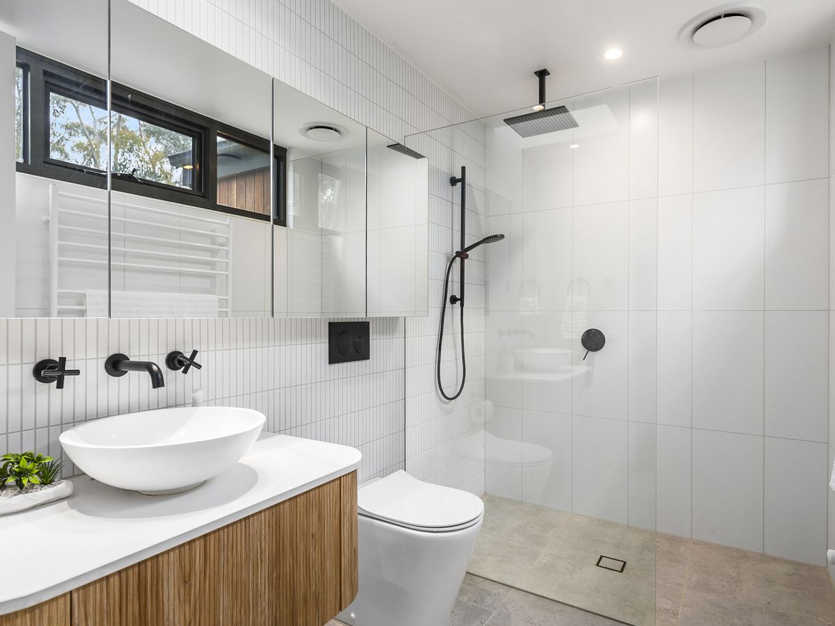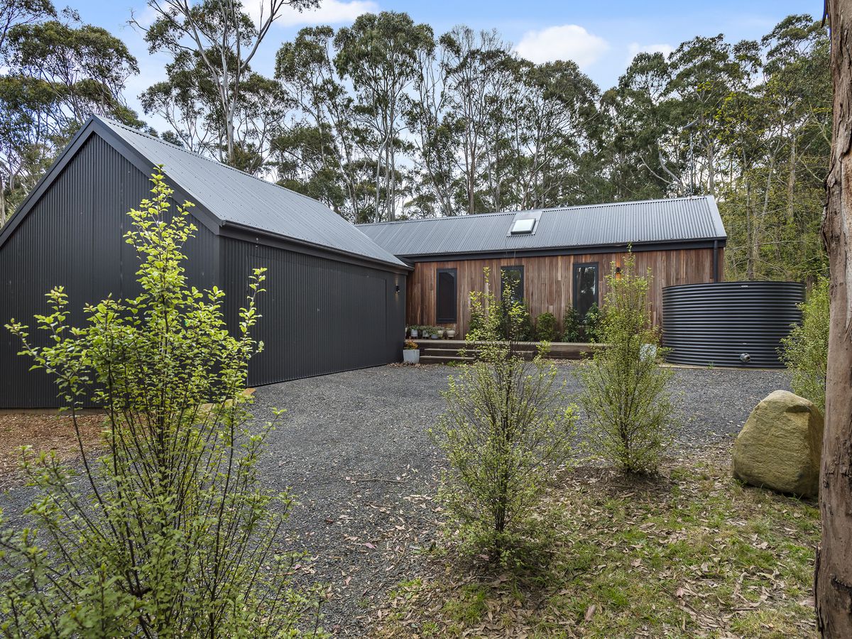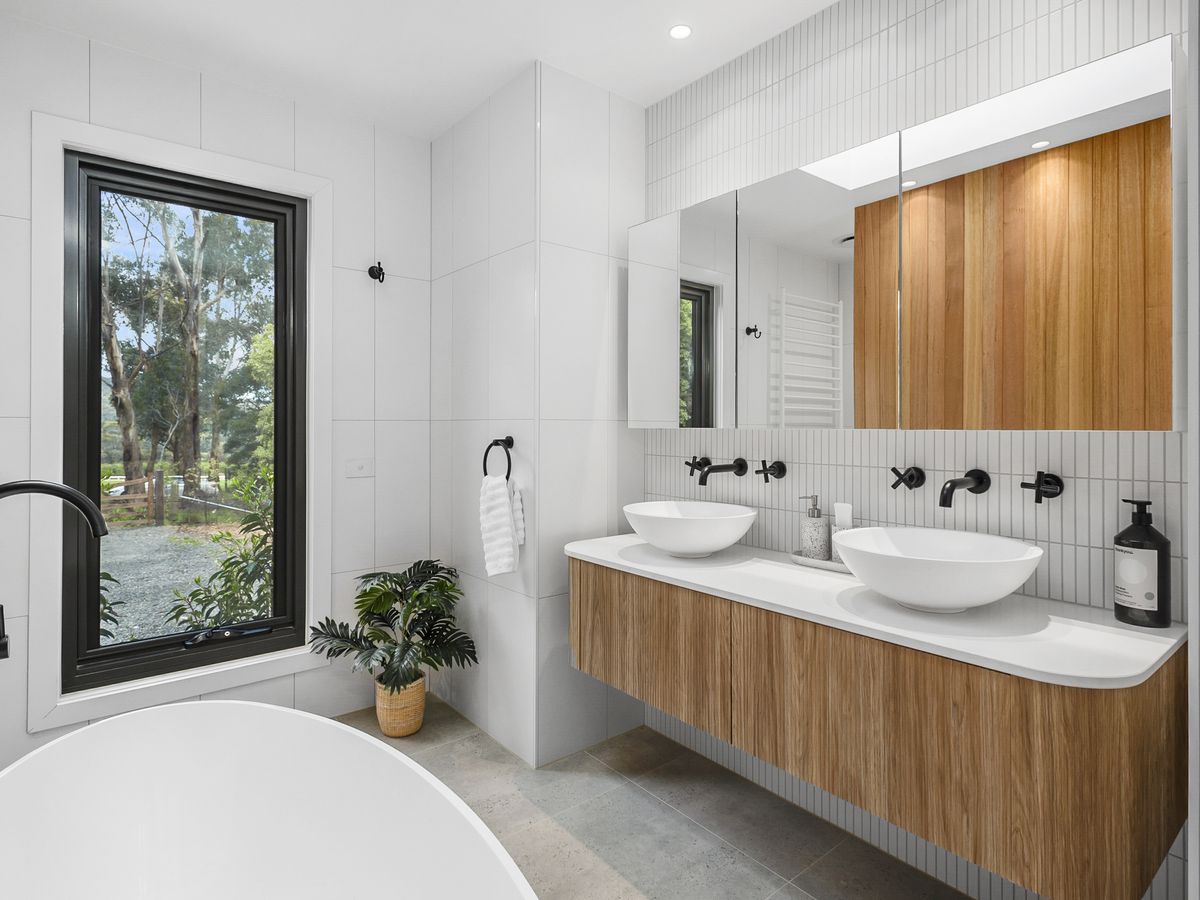 Other features include stylish bathrooms, top-notch appliances, a home office, dimmable lights, ample storage in every room and hallway, two water tanks, a septic system, town gas, and satellite internet. The home meets high bushfire management standards, ensuring safety and keeping insurance costs low. Newly built with high-quality materials, expect low maintenance compared with older properties.